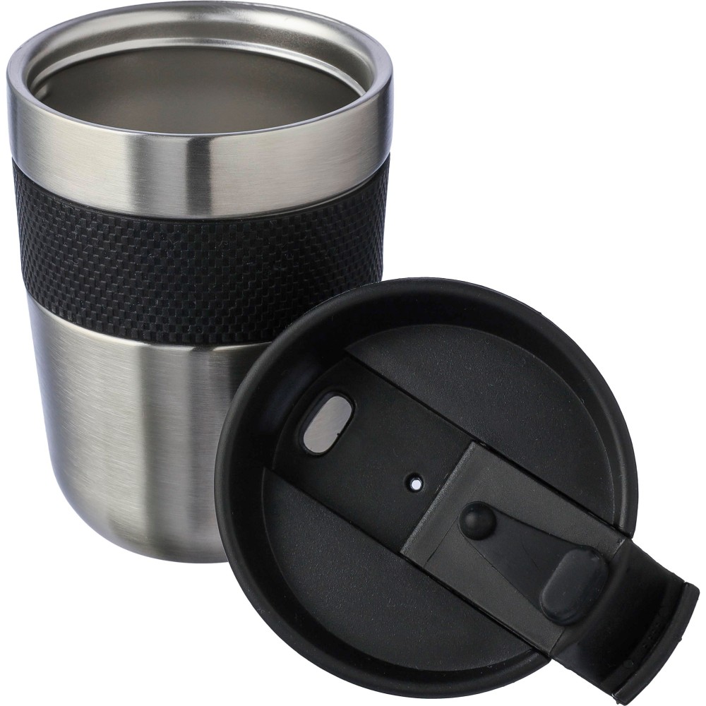 Duplafalú bögre PP fedéllel és szilikon fogóval. A tartalmát 4 órán át melegen és 6 órán át hidegen tartja. A belső rész 304-es rozsdamentes acélból, a külső rész 201-es rozsdamentes acélból készült. Egyenként barna kartondobozba csomagolva. Űrtartalom: 300 ml.