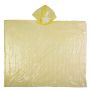 Poncsó szabású esőkabát. Oldalán perforált, bő ujjkivágással. Áttetsző vékony PVC, anyaga emblémázásra nem alkalmas. (Egyedi feliratok az esőkabát tokjában elhelyezhető papírlapra készíthetők.) Kiterített mérete: 126*102 cm.