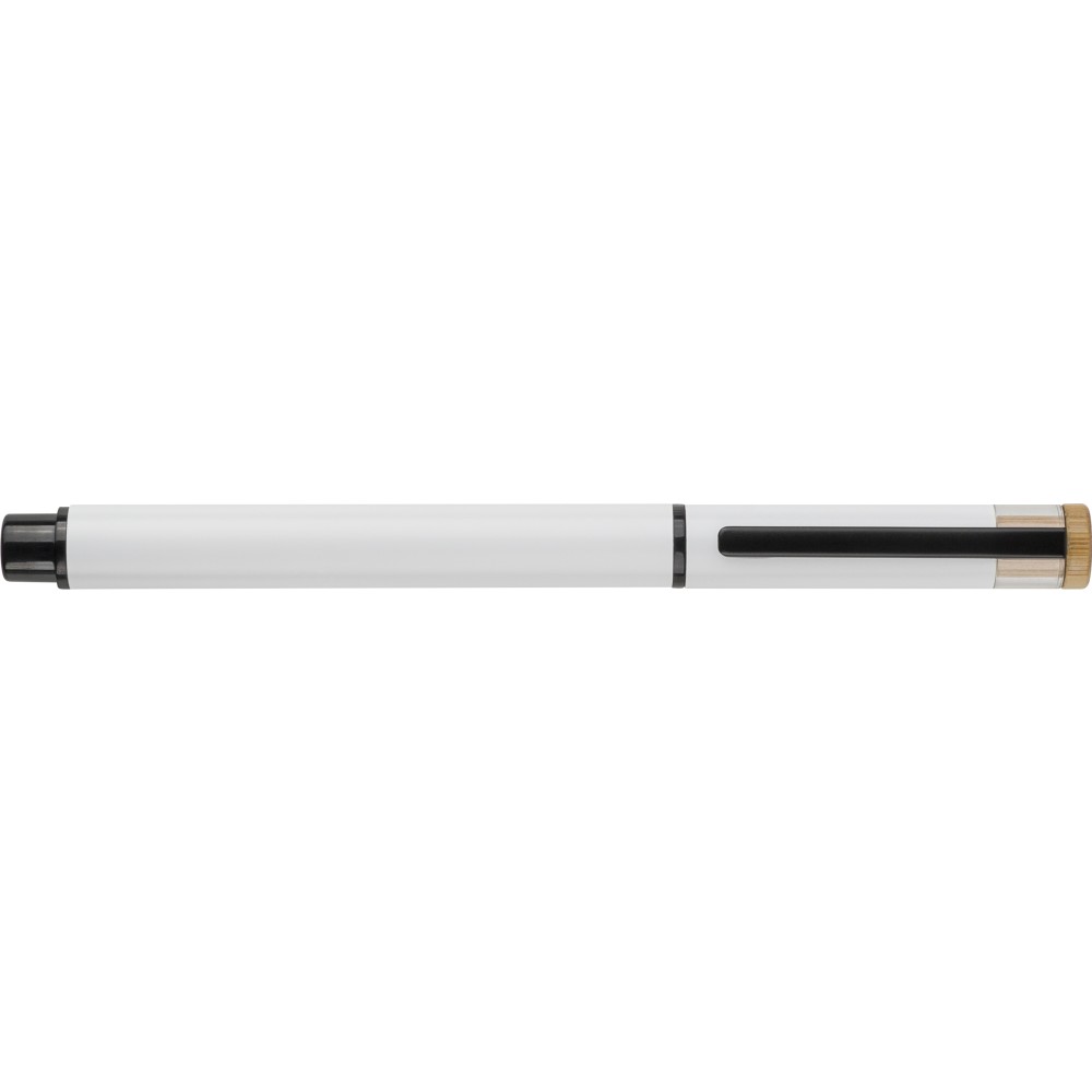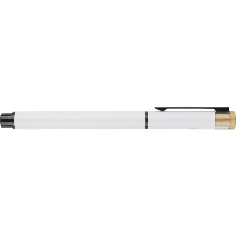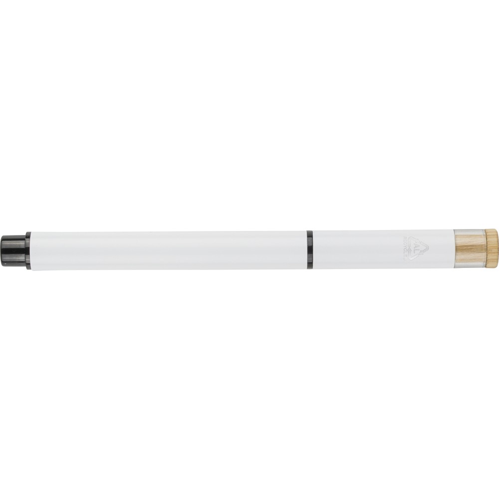 Újrahasznosított alumíniumból készült, lakkozott tollszett golyóstollal és rollerball tollal. A golyóstoll bambusz nyomógombbal, rPET díszítéssel és fém klippel rendelkezik, míg a rollerball toll bambusz/rPET kupakdíszítéssel és hozzá illeszkedő klippel. A tolltesten gravírozott recycled (újrahasznosított) alapanyagra utaló logó található mindkét toll esetében. A golyóstoll kb. 700 méter, a roller toll kb. 500 méter íráskapacitású, mindkettő kék színű tollbetéttel. Színes, újrahasznosított kartonból készült ajándékdobozba csomagolva.