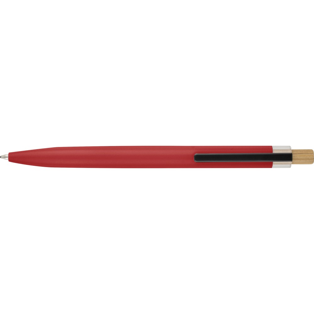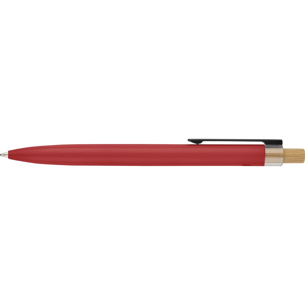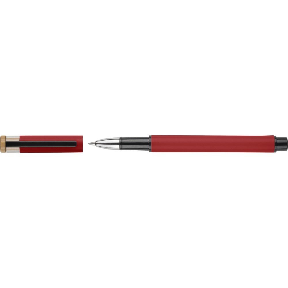 Újrahasznosított alumíniumból készült, lakkozott tollszett golyóstollal és rollerball tollal. A golyóstoll bambusz nyomógombbal, rPET díszítéssel és fém klippel rendelkezik, míg a rollerball toll bambusz/rPET kupakdíszítéssel és hozzá illeszkedő klippel. A tolltesten gravírozott recycled (újrahasznosított) alapanyagra utaló logó található mindkét toll esetében. A golyóstoll kb. 700 méter, a roller toll kb. 500 méter íráskapacitású, mindkettő kék színű tollbetéttel. Színes, újrahasznosított kartonból készült ajándékdobozba csomagolva.