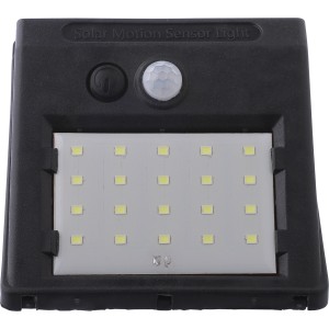Napelemes lámpa 20 COB LED-del. Éjjeli érzékelővel (CDS) és mozgásérzékelővel (PIR). 800 mAh-s akkumulátorral, töltőkábellel, IP44 besorolással és állandó vagy villogó funkciókkal. Csomagolása barna papírdoboz. PP.