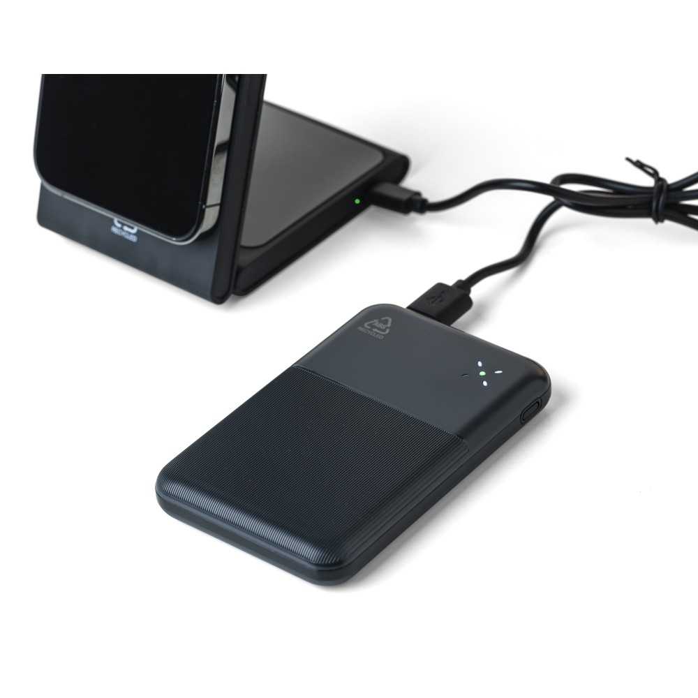 Asama újrahasznosított műanyag powerbank, 5000 mAh, kék Brandcharger Powerwave 10 000 mAh powerbank, sötétszürke SCX.design W13 10W vezeték nélküli töltő, barna ABS powerbank, 10 000 mAh, fehér Xtorm FS510 Fuel Series powerbank, 10.000 mAh, zöld