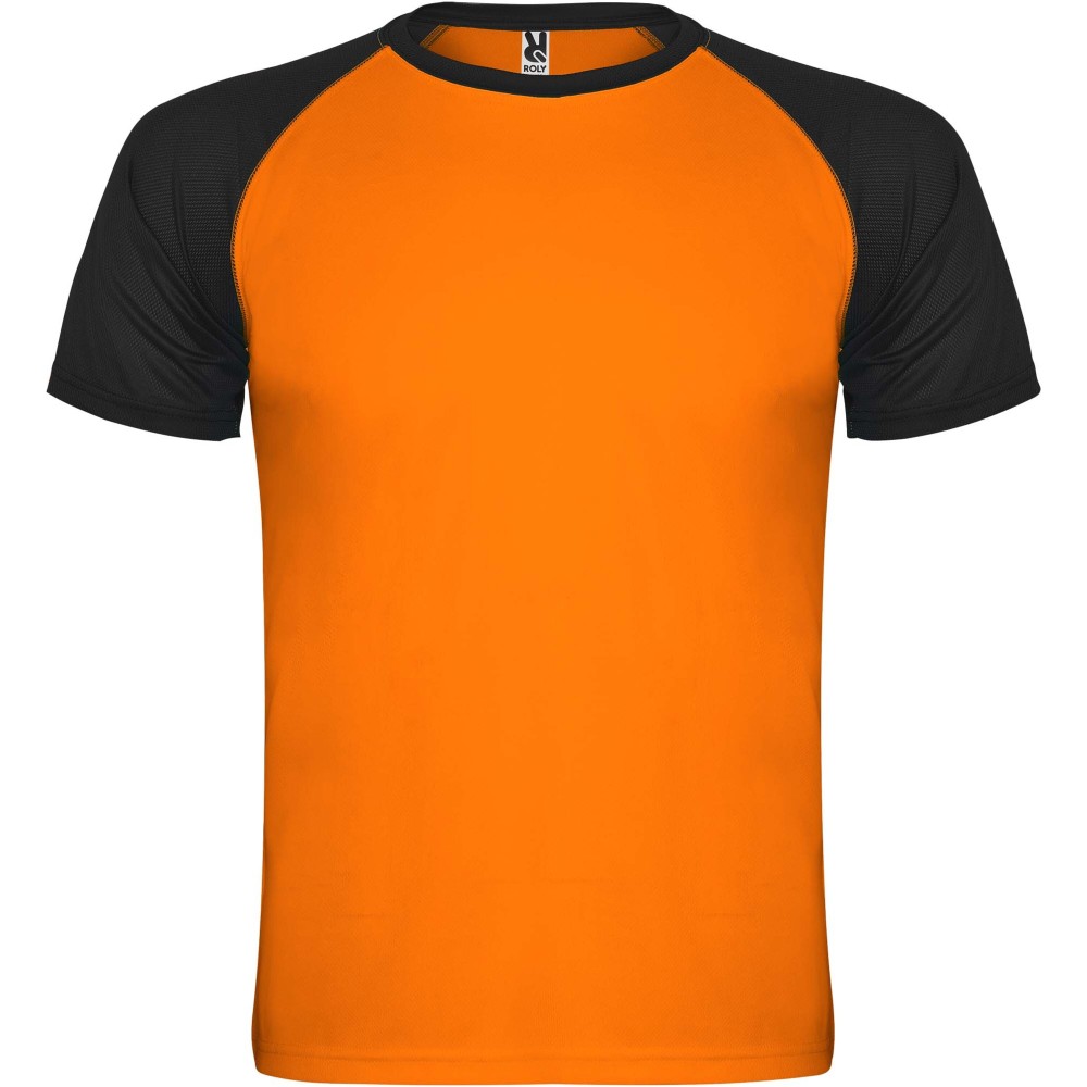Roly Indianapolis rövid ujjú gyerek sportpóló, fluor orange, solid black