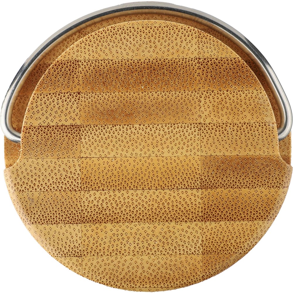 Palack bambusz fedéllel és fém hordozófüllel. Egyenként barna kartondobozba csomagolva. Anyaga: üveg. Űrtartalom: 500 ml.