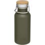 Egyfalú rozsdamentes acél palack csavaros tetővel. A fedélen bambusz rátét, valamint egy fül a könnyű hordozhatóságért. Szivárgásmentes. Szénsavas italokkal nem használható. Mosogatógépben nem mosható és mikrohullámú sütőben történő melegítésre nem alkalmas. Űrtartalom: 550 ml. Csomagolása Avenue díszdoboz. Rozsdamentes acél, bambusz.